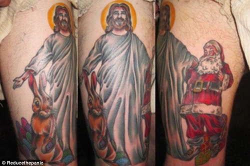 復活節兔子、耶穌和聖誕老人,這個紋身很顯然為全年都做了准備。